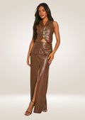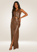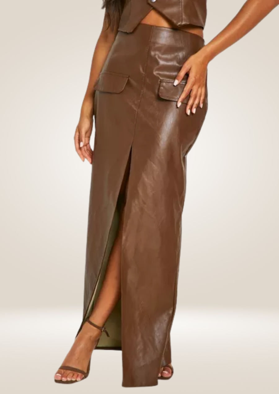 Brown Long Maxi Leather Skirt - Graceful and Sophisticated Style