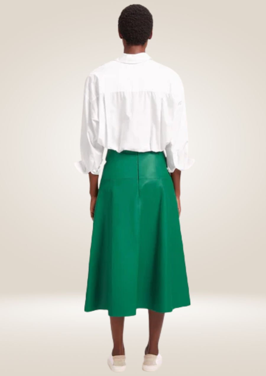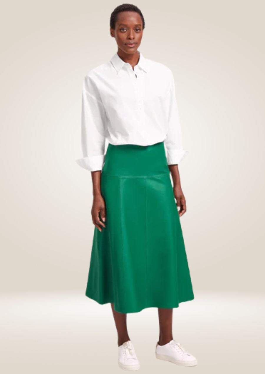 Green Leather A-Line Maxi Skirt - Elegant and Modern Flair