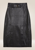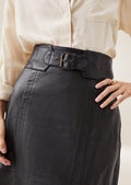 Leather Pencil Midi Skirt - Stylish Buckle Waist Detail
