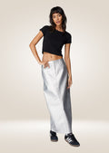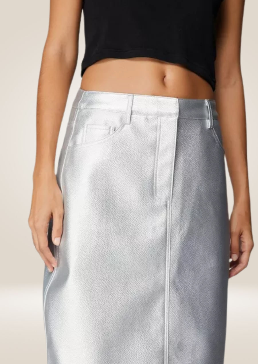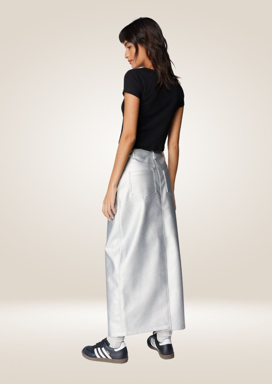 Metallic Silver Leather Maxi Skirt - Glamorous and Bold Style